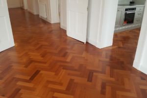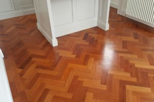 Reclaimed Mahogany Parquet solid hardwood finished flooring with proven provenance circa 1850 installed in a beautiful setting of a renovated historic building circa 1800’s.